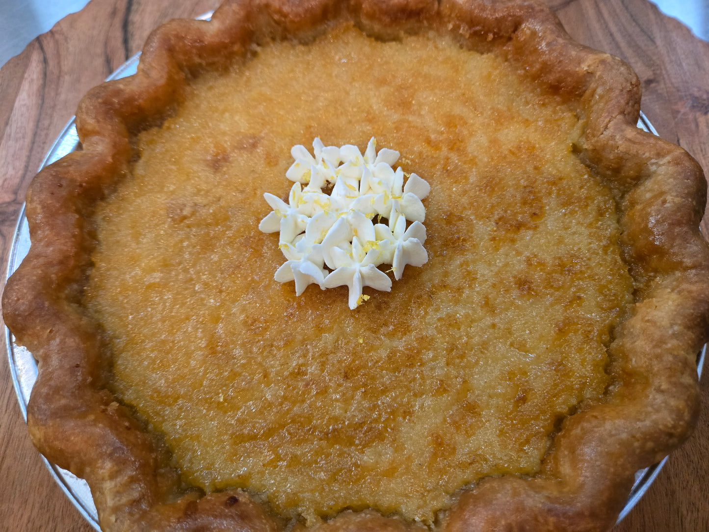 Rich and flavorful lemon filling in our signature all-butter flaky crust, topped with just a touch of homemade whipped cream and lemon zest. A simple, yet delicious classic.